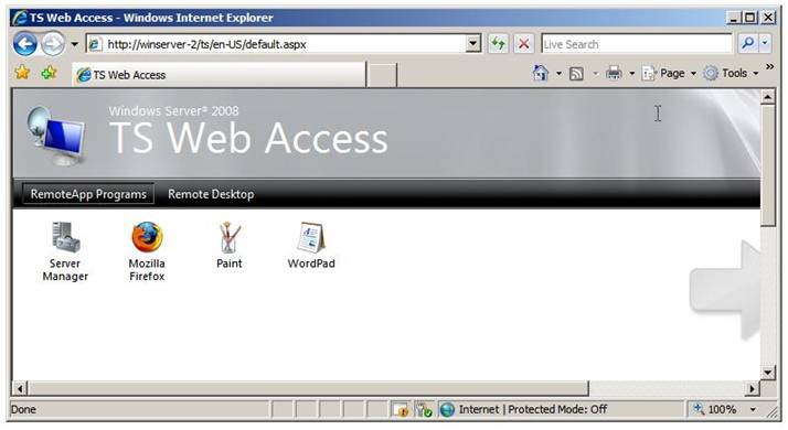 Итак, если ваши RemoteApps настроены для доступа через TS Web Access, просто откройте окно браузера и введите URL-адрес веб-страницы: