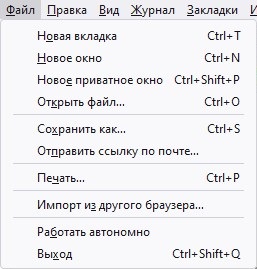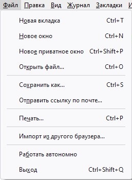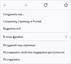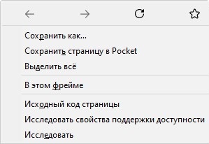 Контекстное меню Firefox со включенным старым интерфейсом