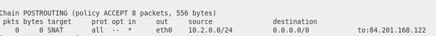 iptables -t nat -A POSTROUTING -s 10.2.0.0/24 -o eth1 -j SNAT --to-source 84.201.168.122