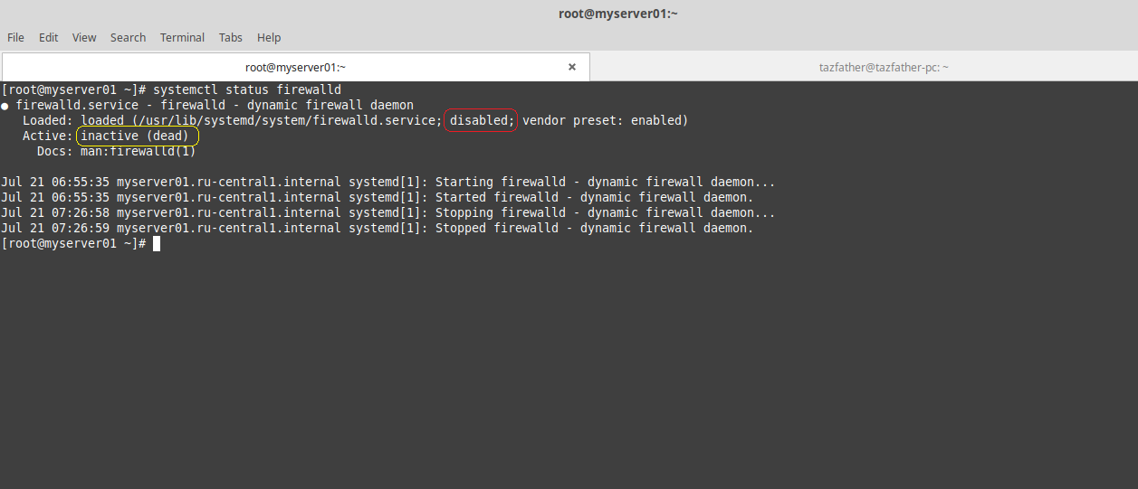 Проверим статус firewalld и отключим его.