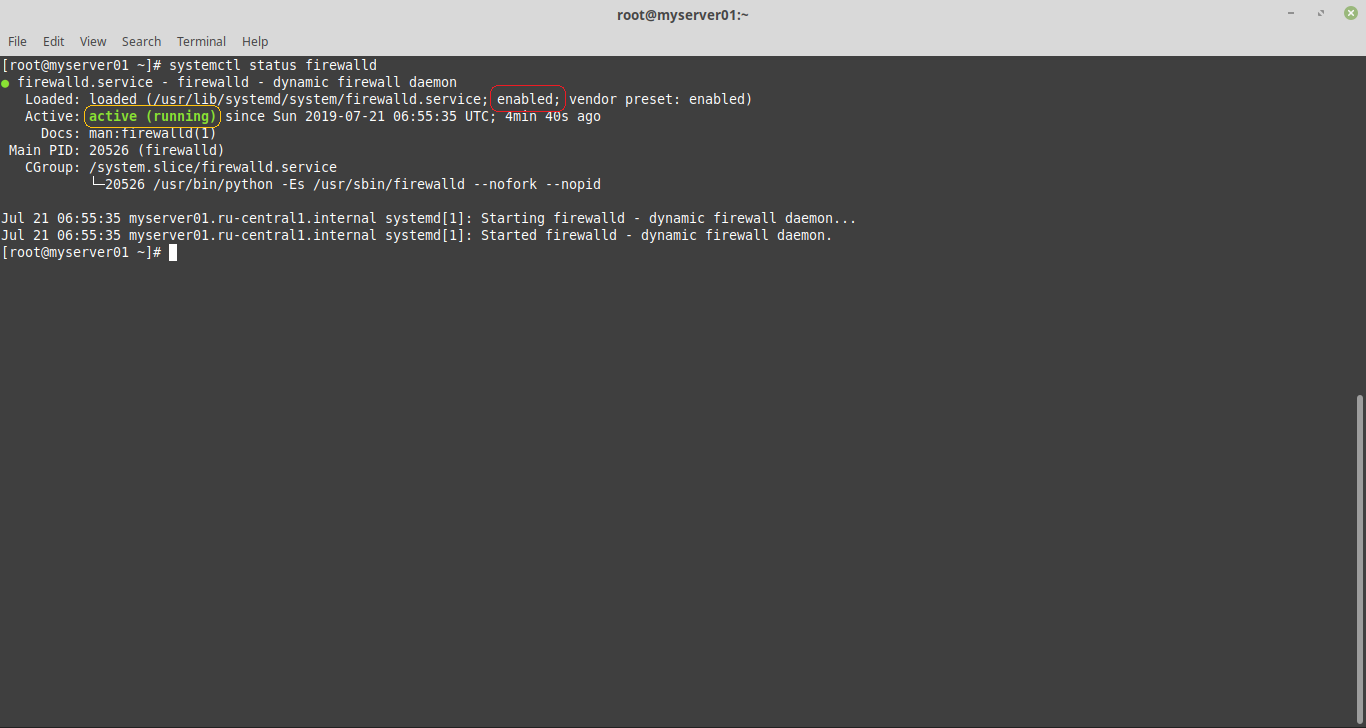 systemctl status firewalld