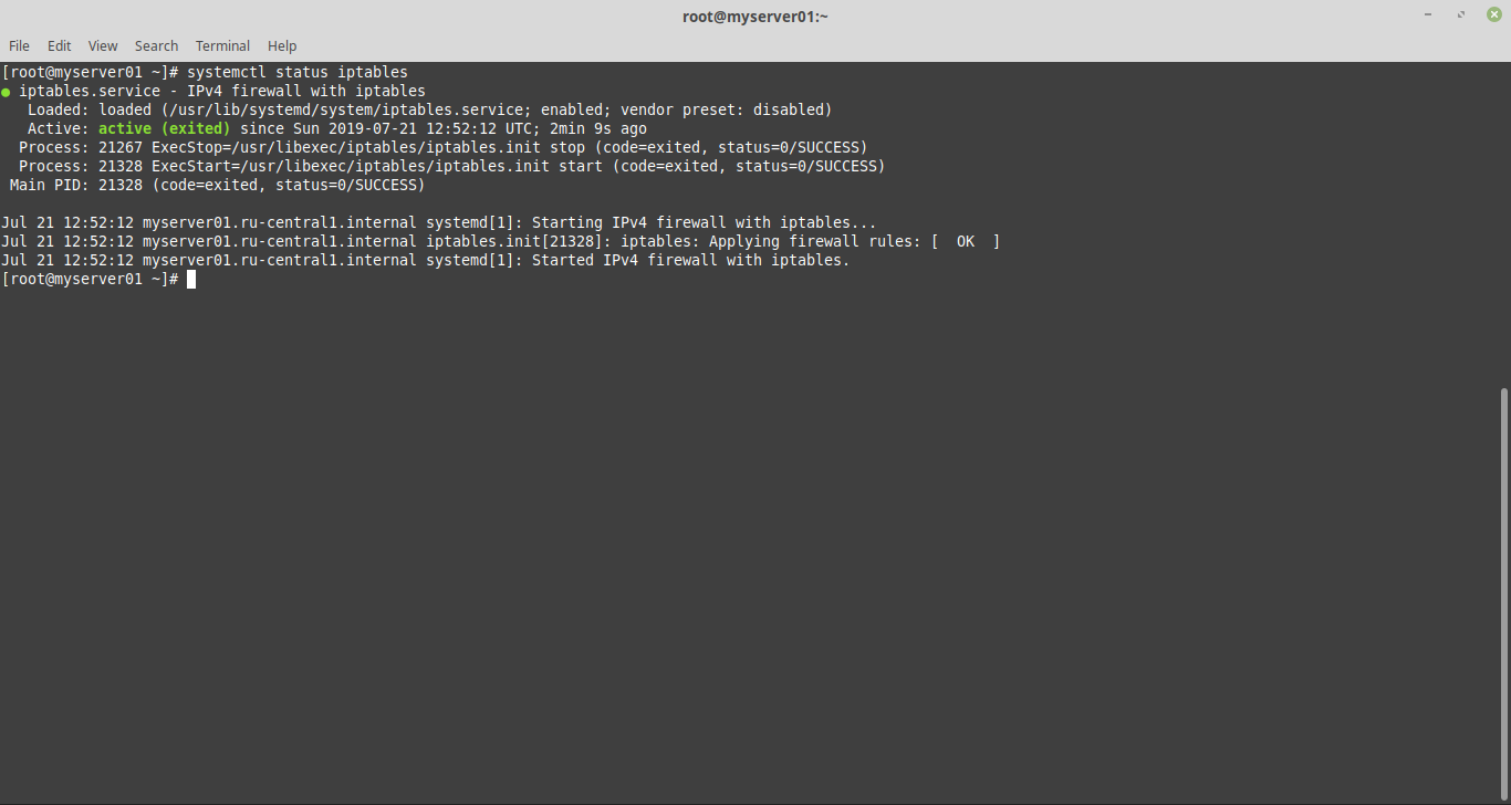 Проверим статус службы iptables: