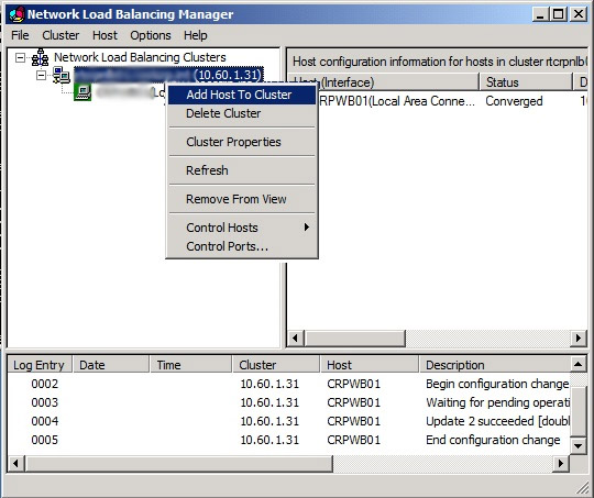 · Чтобы добавить дополнительные сервера в кластер, необходимо щелкнуть по кластеру и выбрать AddHosttoCluster. Настройка параметров новых серверов NLB кластеров (приоритет хоста, выделенный IP адрес, параметры нагрузки) выполняется точно так же. Так как вы добавляете дополнительные хосты в уже сконфигурированный кластер, все общие параметры кластера остаются теми же.