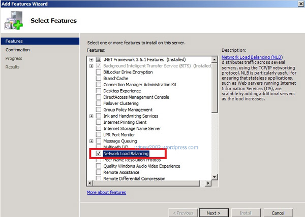 В мастере «Add Features Wizard», выберите Network Load Balancing, затем щелкните Next. После того, как установка NLB закончена, необходимо проверить, что в свойствах сетевого адаптера появилась опция NLB.