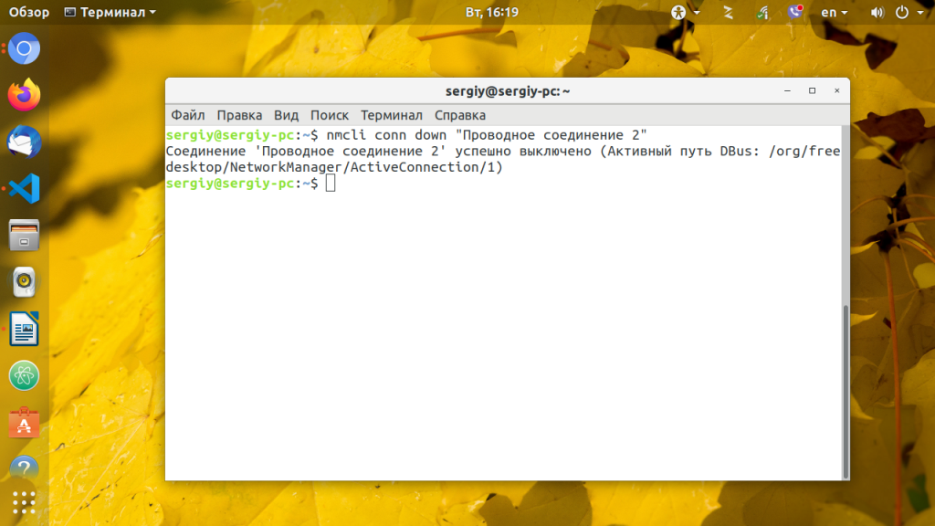 nmcli conn down "Проводное соединение 2"