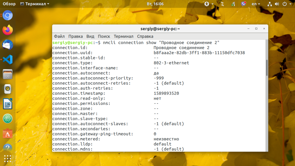 nmcli connection show "Проводное соединение 2"