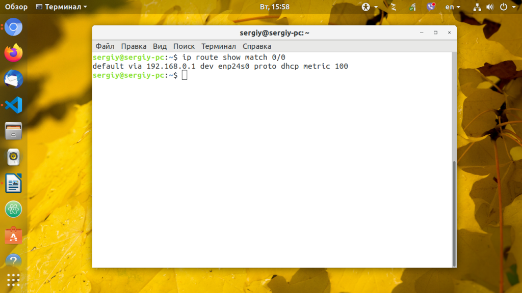 ip route show match 0/0
