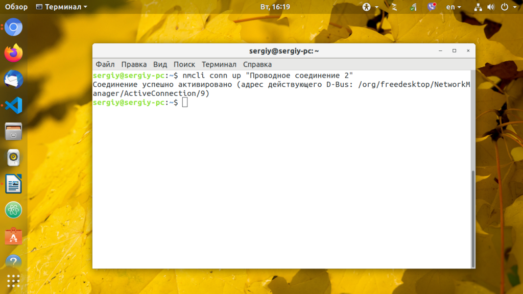 nmcli connection up "Проводное соединение 2"