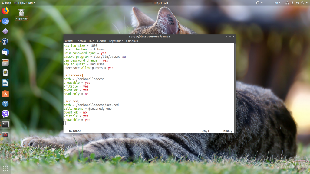 Когда завершите создание конфигурационного файла, переходим к вопросу как расшарить папку Ubuntu для Windows.