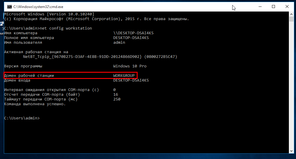 Нужный нам параметр мы видим в строке Домен рабочей станции. Это и есть рабочая группа.