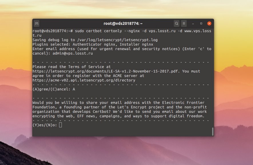 sudo certbot certonly --nginx -d vps.losst.pro -d www.vps.losst.pro