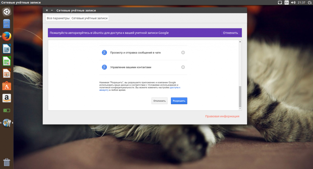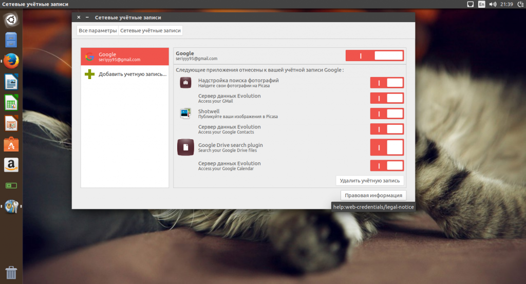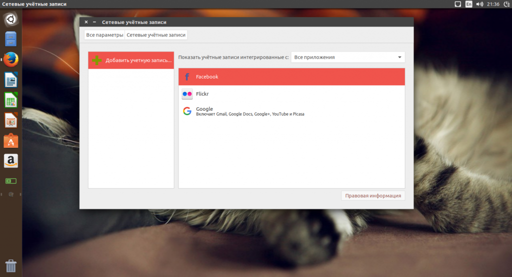 Синхронизация с сетевыми аккаунтами дает несколько полезных преимуществ. Вы можете настроить связь с аккаунтом Google и синхронизировать события из календаря, почту и фотографии прямо в системе. Также можно подключить аккаунт Facebook и сразу получать уведомления о сообщениях. Правда, непонятно почему убрали возможность синхронизации с Google диском, как в Gnome 3, но это уже такое.
