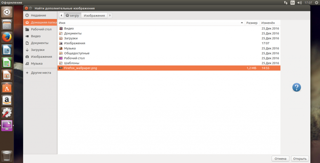 Далее, в открывшемся окне на панели справа вы можете выбрать одно из поставляемых по умолчанию изображений. Если этого вам недостаточно, с помощью кнопки «+» вы можете установить произвольное изображение, которое находится в файловой системе.