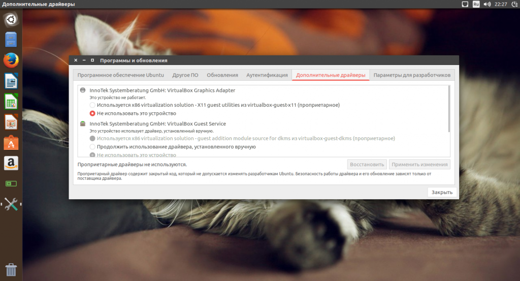 Настройка Linux Ubuntu почти завершена. Одним из важных моментов в настройке Ubuntu есть установка сторонних драйверов. Для этого есть специальная утилита. Откройте «Дополнительные драйверы» и выберите программы, которые нужно установить: