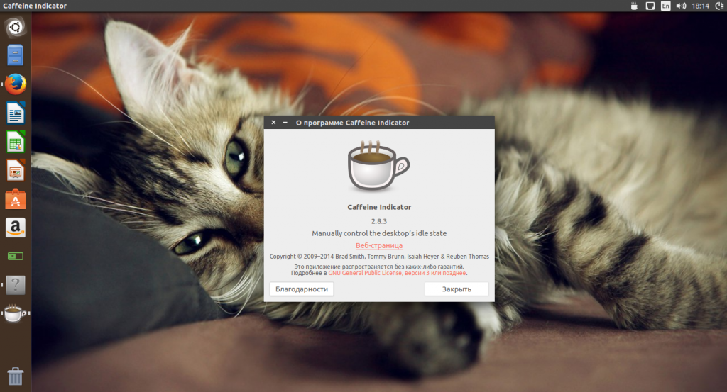 Вы можете добавить множество различных индикаторов на панель Ubuntu чтобы сделать ее более информативной. Мы подробно рассмотрели их в статье индикаторы Ubuntu. Например, очень полезным будет индикатор Caffeine, который отключает блокировку экрана на время просмотра видео. Для его установки наберите: