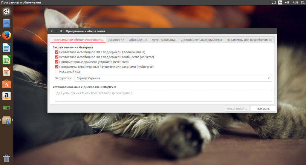 Затем перейдите на вкладку «Программное обеспечение Ubuntu» и отметьте там все галочки: