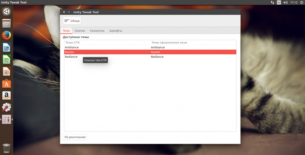 После выполнения этой строки будет установлена как тема интерфейса, так и тема иконок. Далее, чтобы активировать эту тему нам понадобиться сторонняя программа, Unity Tweak Tool, она тоже есть в официальных репозиториях: