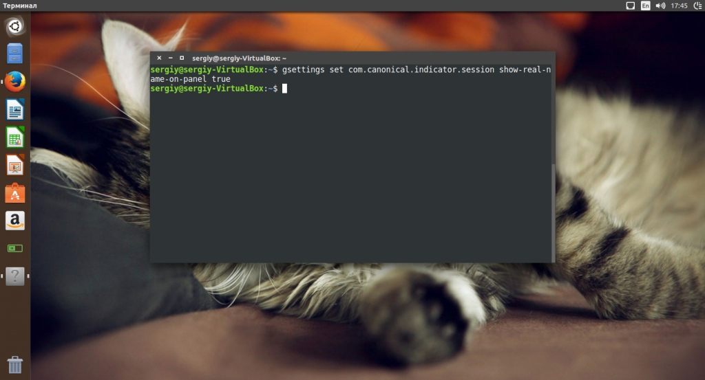 gsettings set com.canonical.indicator.session show-real-name-on-panel true