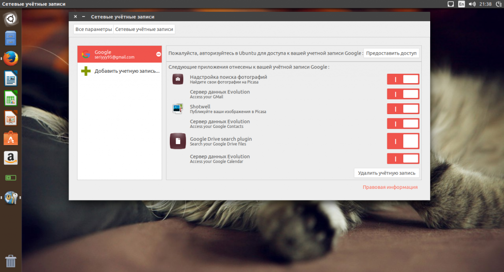 Откройте настройки системы, затем раздел «Сетевые учетные записи». Кликните два раза по учетной записи Google: