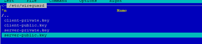 В результате выполнения предыдущих команд, появится 4 файла с ключами: приватный и публичный ключи для сервера, а также аналогичные ключи для клиента (мы будем использовать их при настройке клиента WireGuard).