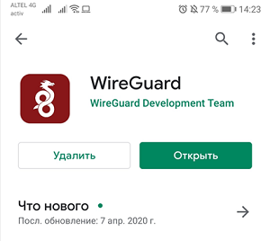 Для подключения с мобильного устройства Android, лучше всего использовать приложение WireGuard, которое доступно в Play Маркет (Google Play):