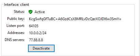 Чтобы отключиться от WireGuard, нажмите кнопку Deactivate.