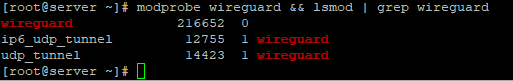 В дальнейшем настройка WireGuadr не отличается на этих дистрибутивах CentOS. Чтобы проверить, что модуль wireguard был установлен и загружен, выполните команду: