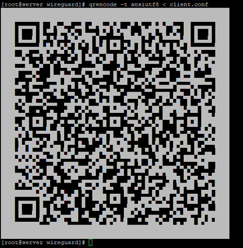 # qrencode -t ansiutf8 < /etc/wireguard/client.conf