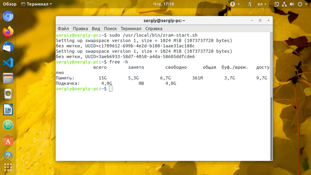 В этой небольшой статье мы рассмотрели как включить zram ubuntu. Как видите, в современных версиях дистрибутива, где модуль уже включён в ядро в этом нет ничего сложного. А пользуетесь ли вы какими-либо технологиями сжатия памяти? Напишите в комментариях!