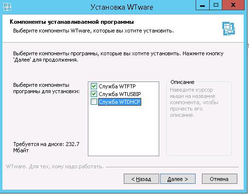 Далее предлагается выбрать устанавливаемые службы WTware: