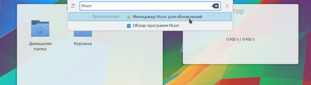 Сначала обновим систему до самого последнего состояния. Откройте окно запуска приложений сочетанием клавиш Alt+F2, наберите Muon: