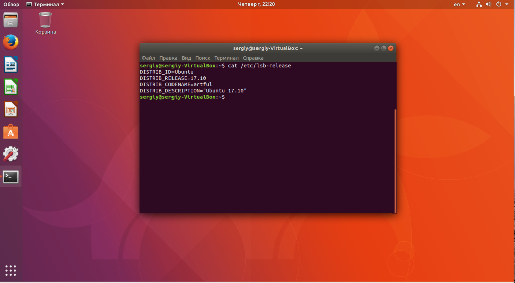 После авторизации убедитесь, что обновление до Ubuntu 17.10 выполнено успешно:
