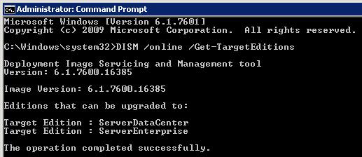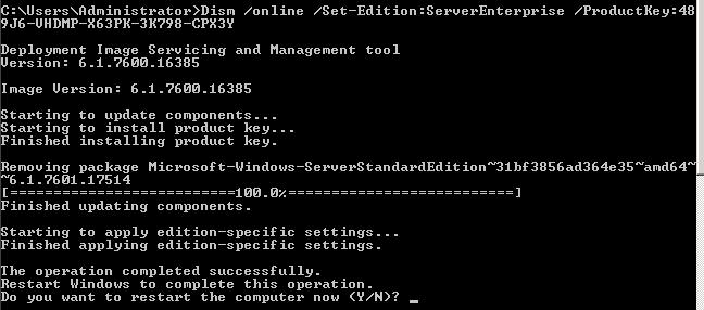 Чтобы выполнить обновление до Windows 2008 R2 Enterprise выполните команду: