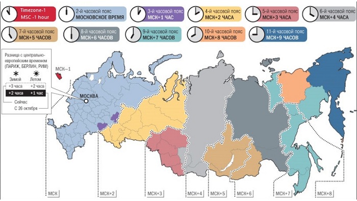 Напомним, что 21 июня этого года был принят Федеральный закон Российской Федерации №248-ФЗ «Об исчислении времени» на территории Российской Федерации с 26.10.2014 г. Согласно этому закону, вступающему в силу 26 октября 2014 года в 02:00 страна возвращается с летнего на постоянное зимнее время</strong>. Кроме того, закон предполагает создание одиннадцати часовых зон с учетом максимального приближения к часовым поясам всемирного координированного времени UTC. Перевод на летнее и зимнее время (сезонный перевод времени) по-прежнему осуществляться не будет.