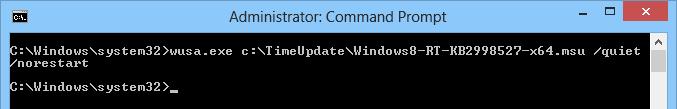 wusa.exe c:TimeUpdateWindows8-RT-KB2998527-x64.msu /quiet /norestart
