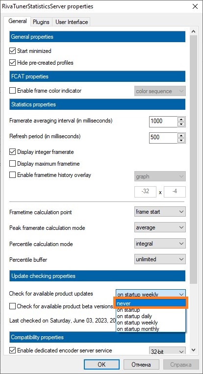 По умолчанию, программа RivaTuner Statistics Server (сокращенно RTSS) настроена на еженедельную проверку обновлений, в результате чего, при наличии новой версии при запуске Windows вас может встречать соответствующее уведомление: