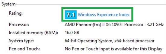 Опытные пользователи Windows помнят, что индекс оценки производительности (Windows Experience Index — WEI) впервые появился еще в Windows Vista. Индекс производительности рассчитывается на основании оценки производительности следующих подсистем компьютера: процессора, памяти, 2D графики, 3D графики и устройства хранения (жесткого диска). Для каждой из подсистем на основе результатов оценочного тестирования рассчитывается собственное значение индекса производительности, а общий индекс для всего компьютера (Base Score) равен минимальному значению среди всех подсистем.