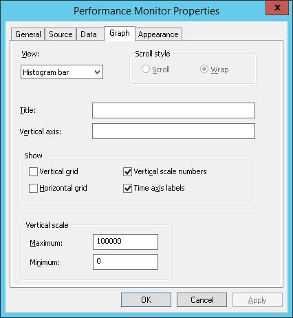 Для большой наглядности при большом количестве сессий можно в свойствах Perfomance Monitor на вкладке Graph выбрать вид представления Histogram bar, а в качестве значения вертикальной шкалы задать к примеру 100 Кбит/с (100000).