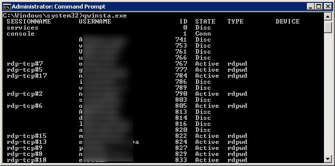 Чтобы сопоставить номер RDP сессии с именем пользователя, можно воспользоваться консольной утилитой qwinsta.exe.