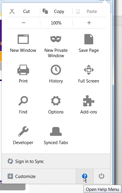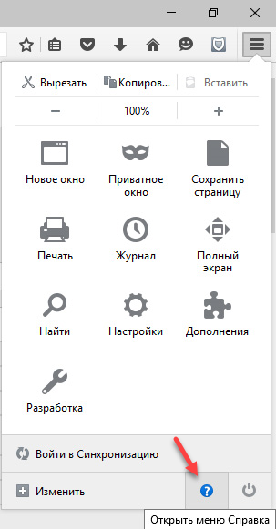 - Внизу открывшегося списка нажмите на «Открыть меню справка» (вопросительный знак в круге).