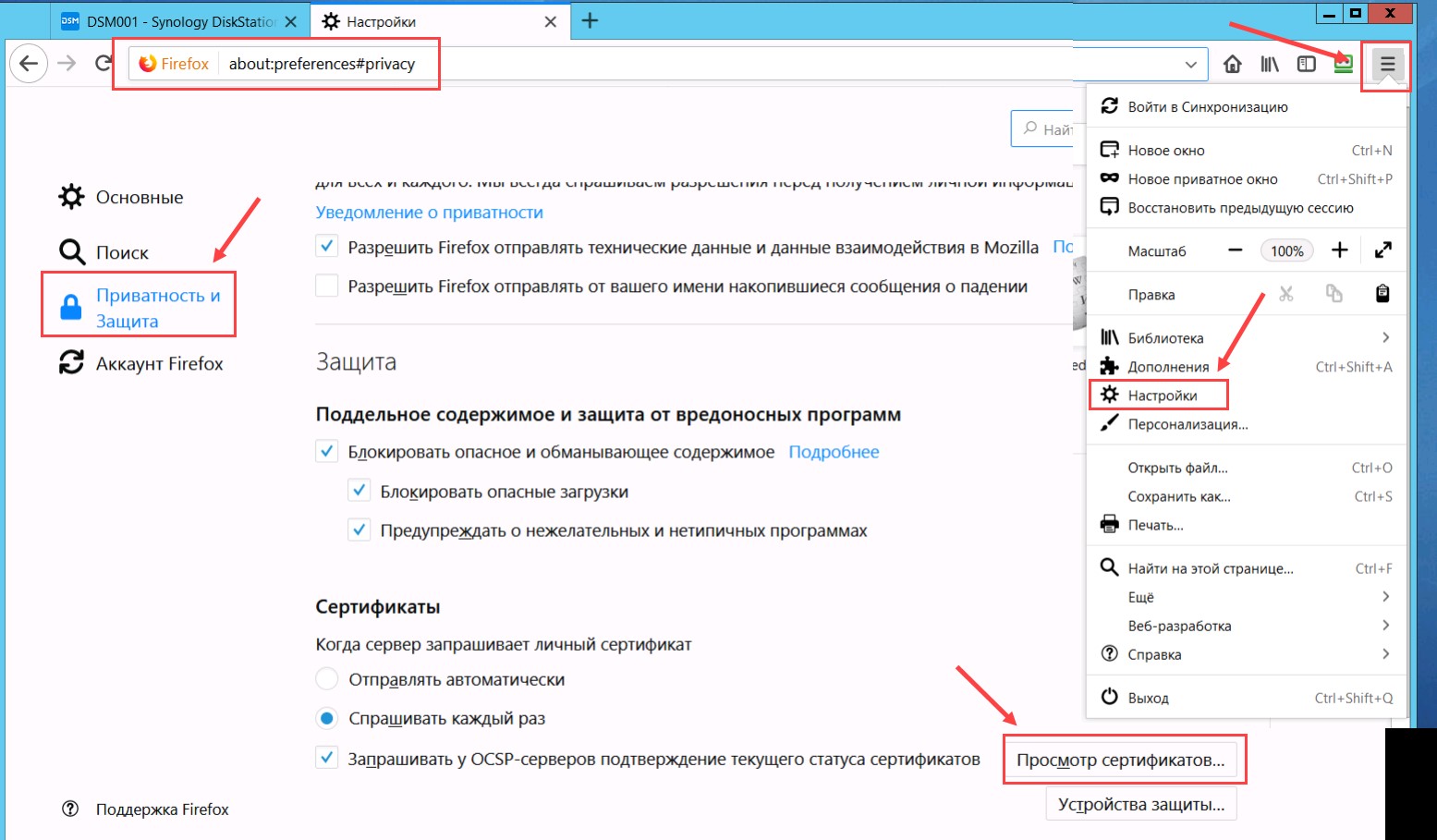 - Сертификат сайта является доверенным, но браузер считает иначе из-за повреждений файла cert8.db (хранилища идентификаторов).