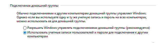 Затем в настройках Дополнительных параметров общего доступа включите опцию Использовать учетные записи пользователей и пароли для подключения к другим компьютерам (Use user accounts and passwords to connect to other computers).