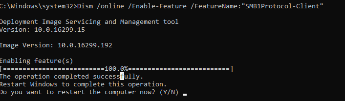 Dism /online /Enable-Feature /FeatureName:"SMB1Protocol-Client"