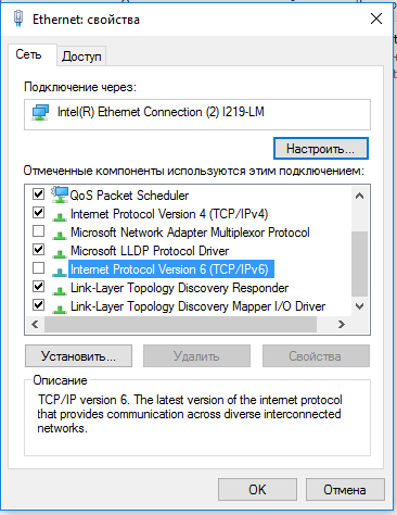 - Попробуйте отключить IPv6 протокол в свойствах вашего сетевого адаптера в Панели управления. Здесь же проверьте, что на сетевом адаптере включены CClient for Microsoft Network (Клиент для сетей Microsoft)) и File and Printer Sharing for Microsoft Networks;