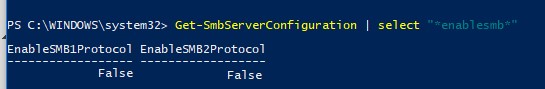 EnableSMB1Protocol : False EnableSMB2Protocol : False