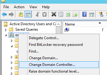 Для переноса FSMO ролей можно использовать стандартные графические оснастки Active Directory. Операцию переноса желательно выполнять на DC с FSMO ролью. Если же консоль сервера не доступна, необходимо выполнить команду Change Domain Controller и выбрать connect to контроллер домена в mmc-оснастке.