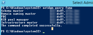 Schema master dc01.domain.loc Domain naming master dc01.domain.loc PDC dc01.domain.loc RID pool manager dc01.domain.loc Infrastructure master dc01.domain.loc
