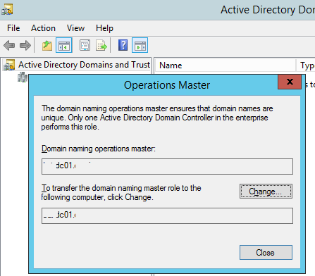 Domain naming master Active Directory Domains and Trusts ( domain.msc )