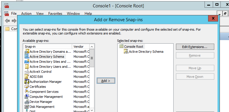 1. Сначала нужно зарегистрировать библиотеку schmmgmt.dll командой: regsvr32 schmmgmt.dll 2. Откройте консоль MMC, набрав MMC в командной строке;