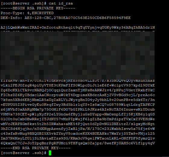 Generating public/private rsa key pair. Enter file in which to save the key (/root/.ssh/id_rsa): Enter passphrase (empty for no passphrase): Enter same passphrase again: Your identification has been saved in /root/.ssh/id_rsa. Your public key has been saved in /root/.ssh/id_rsa.pub. The key fingerprint is: SHA256:ffIDjWIfOgMZmOVbQmDWaOCADK4G3cYYy0dTIjqLkD8 root@server.vpn.ru The key's randomart image is: +---[RSA 2048]----+ |* +.B=+ | |oO @oO. | |*.*.B + . | |=+ o * . o | |+.E + S * o | |. . o + * | | + . o | | o . | | | +----[SHA256]-----+